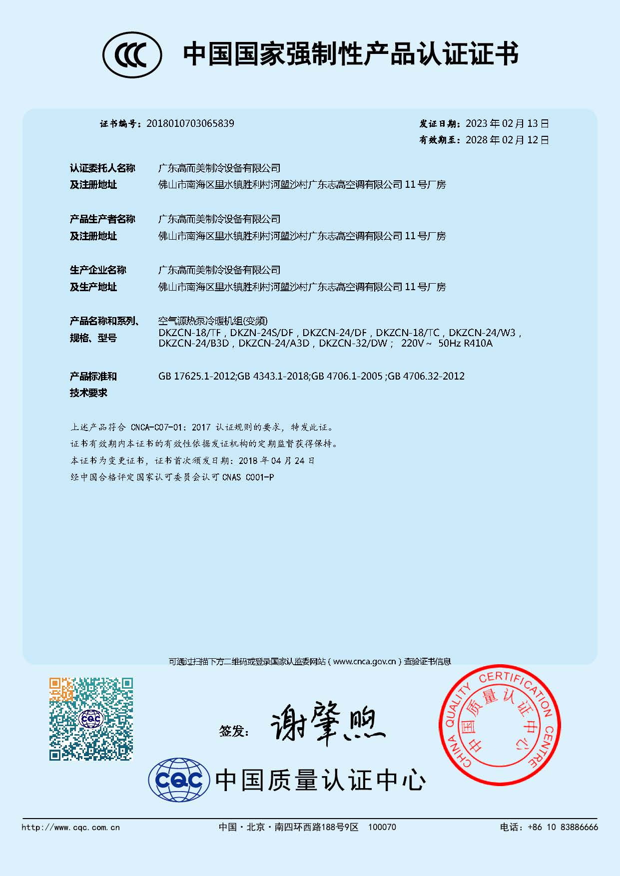 公司建立了國家認證認可監(jiān)督管理委員會備案認可的“能效標(biāo)識能源效率檢測實驗室”,公司檢測檢驗中心2019年獲得國家CNAS認證。公司全面通過了ISO9001質(zhì)量管理體系認證、ISO14001環(huán)境管理體系認證,IEC體系的國際標(biāo)準(zhǔn)QC080000電器有害物質(zhì)管理體系標(biāo)準(zhǔn)認證。連續(xù)8年榮獲中國節(jié)能協(xié)會、熱泵產(chǎn)業(yè)聯(lián)盟“十大領(lǐng)軍品牌”企業(yè)。獲得廣東省認定的“廣東省低碳冷熱設(shè)備工程技術(shù)研究中心”、“廣東省級企業(yè)技術(shù)中心”、“廣東省高成長中小企業(yè)”、廣東省專精特新企業(yè)”、“廣東省知識產(chǎn)權(quán)示范企業(yè)”、“佛山市細分行業(yè)龍頭企業(yè)”、“佛山市標(biāo)桿高新技術(shù)企業(yè)”、2022年榮獲國家級專精特新“小巨人”企業(yè)、“廣東知名品牌”等企業(yè)資質(zhì)和榮譽。公司參與了多項國家標(biāo)準(zhǔn)、行業(yè)標(biāo)準(zhǔn)的編制,在行業(yè)中保持研發(fā)能力領(lǐng)先地位。擁有熱泵核心專利技術(shù)129件,其中發(fā)明專利65件,計算機軟著8件。通過多年自主研發(fā)掌握了“微通道分液冷凝技術(shù)(榮獲2018年廣東科技進步獎)”“跨溫區(qū)高能效熱泵技術(shù)”“多模式中高溫?zé)岜煤娓杉夹g(shù)”等多項國內(nèi)領(lǐng)先國際先進的熱泵核心技術(shù)。公司自主研發(fā)的“高能效空氣源熱泵熱水機組”“低溫型熱泵采暖、干燥機組”入選工信部全國工業(yè)領(lǐng)域電力需求側(cè)管理第二批參考產(chǎn)品(技術(shù))目錄。2018年獲得工信部國家中小企業(yè)發(fā)展基金戰(zhàn)略投資。2020年經(jīng)廣東省教育廳批準(zhǔn)與廣東工業(yè)大學(xué)合作設(shè)立聯(lián)合培養(yǎng)研究生示范基地、廣東省首批產(chǎn)教融合型試點企業(yè)。